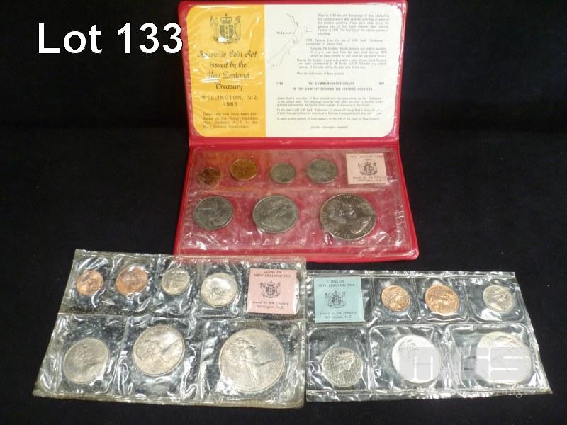 3 X NEW ZEALAND, UNCIRCULATED COIN SETS, INC; 1967, 1968, 1969