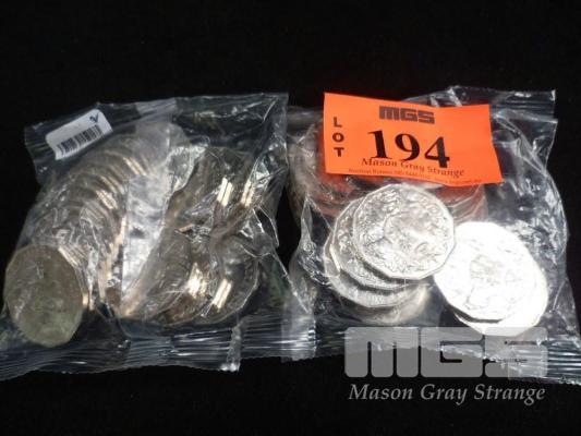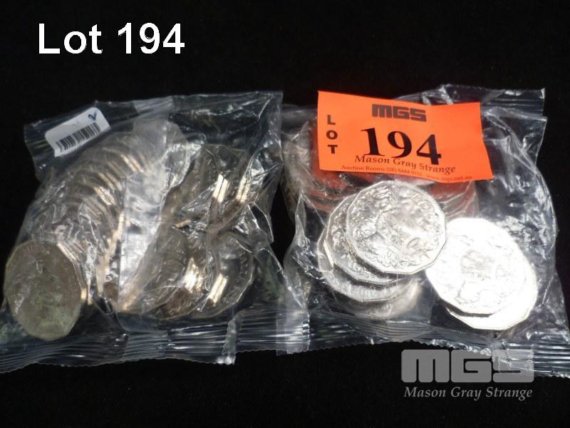 2 X SEALED BAGS OF 20, AUSTRALIA, 2019, 50c COINS, UNC