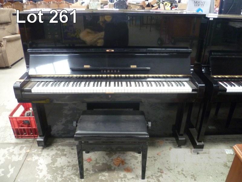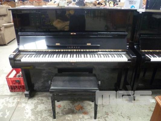 YAMAHA UPRIGHT PIANO, BLACK GLOSS FINISH WITH PIANO STOOL