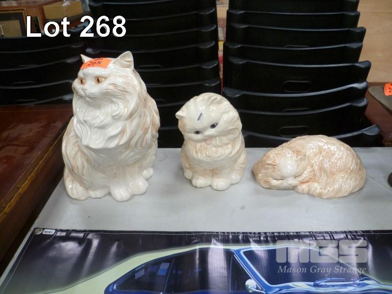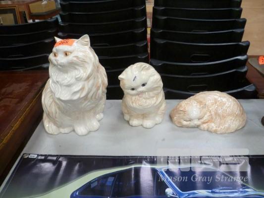 3 x CERAMIC CATS, VARIOUS SIZES