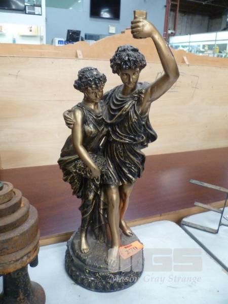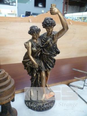 COMPOSITE STATUE ROMAN LOOKING GUY HOLDING TORCH WITH FEMALE FRIEND