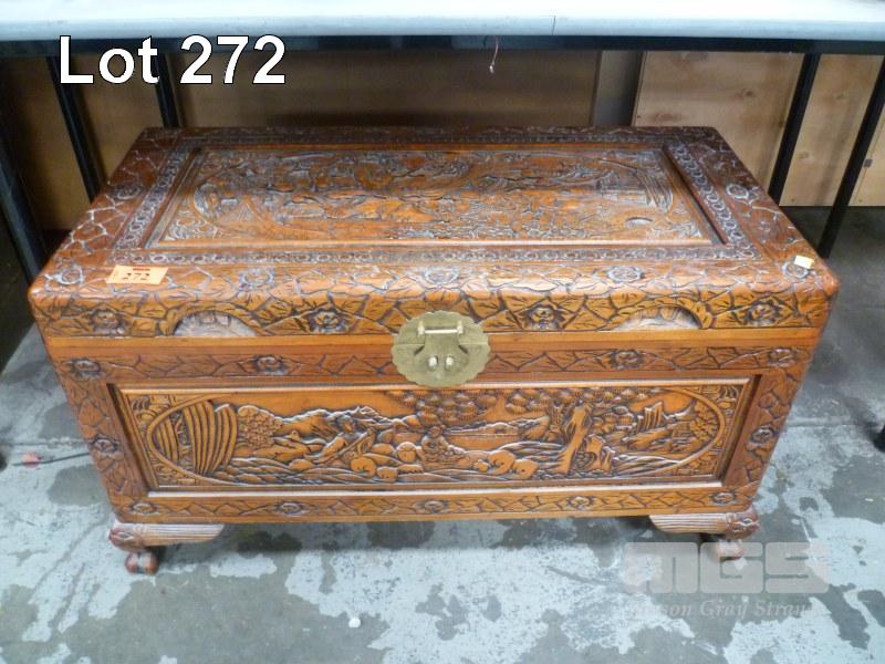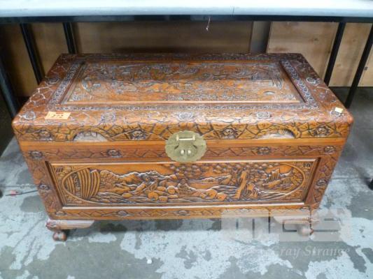 CAMPHOR-WOOD CHEST, DECORATIVE CARVED, ORIENTAL STYLE