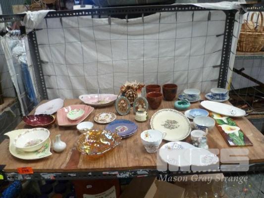 ASSORTED FINE CHINE & CERAMIC WARE INC CALRTONWARE, BUNNYKINS, MERIGOLD CARNIVAL GLASS BOWL ETC