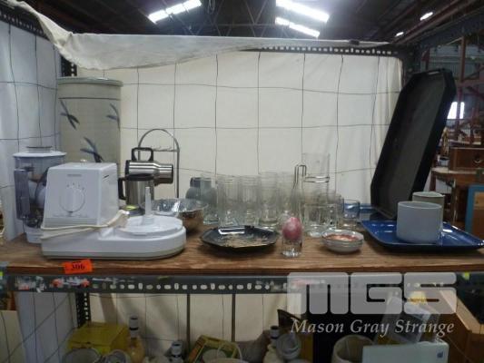ASSORTED KITCHENWARE, CERAMIC WATER DISPENSER, GLASSWARE, PLATES, CUPS ETC