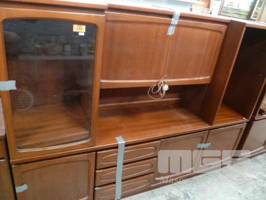NOBLETT FURNITURE NORDIC WALL UNIT, INC GLASS FRONTED SINGLE DOOR SIDE CABINET, SIDE SHELF UNIT, COCKTAIL CABINET CENTRE & 3 DOOR/DRAWER UNDERSTORAGE
