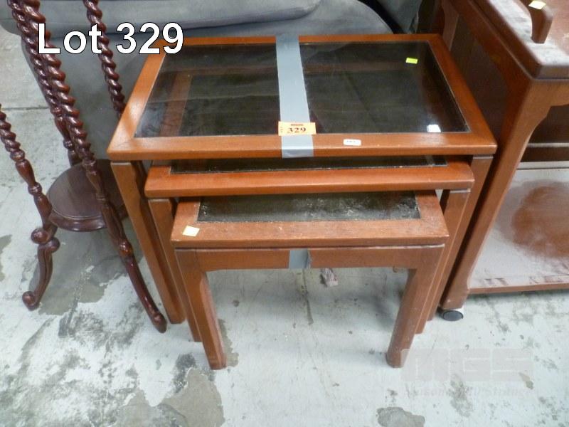 NOBLETT FURNITURE NEST 3 GLASS TOPPED COFFEE/SIDE TABLES