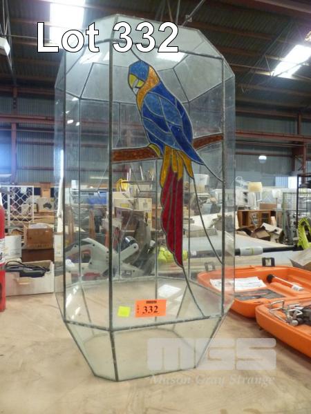 LEADLIGHT GLASS TERRARIUM DEPICTING PARROT ON PERCH