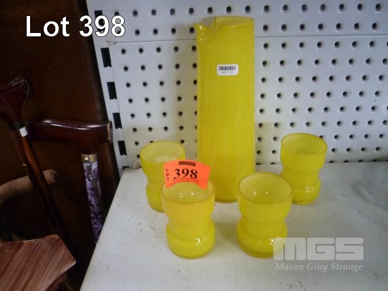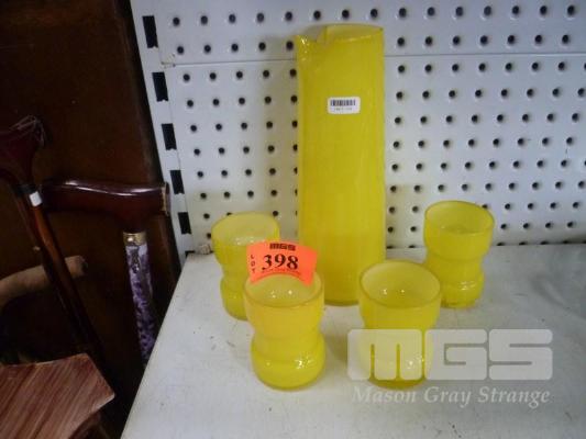 VINTAGE ART GLASS WATER/CORDIAL DRINKS SET, YELLOW