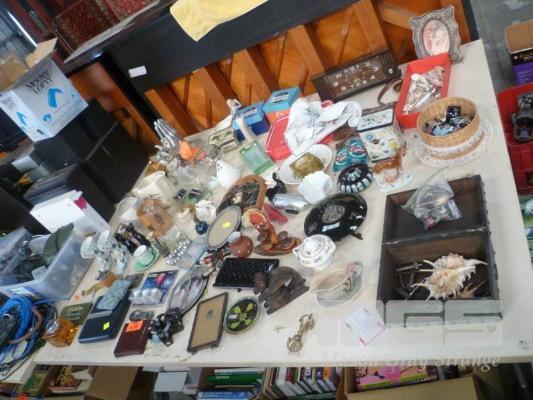 ASSORTED HOME WARES & FIGURINES, ORNAMENTS, PHOTO FRAMES, VASES ETC