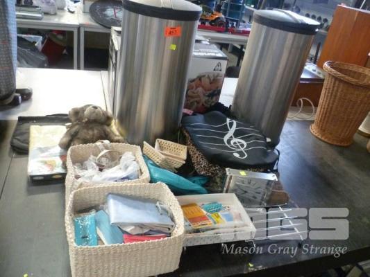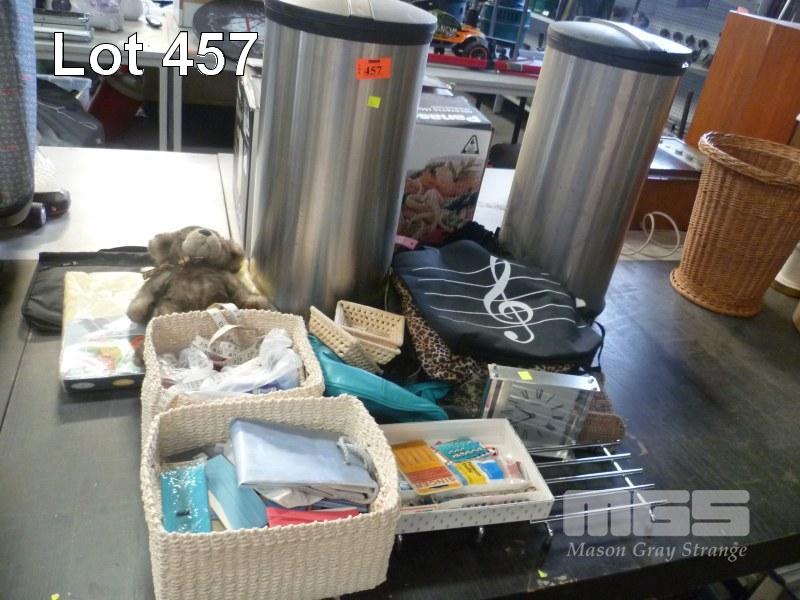 2 X FLIP TOP BINS, SEWING SUPPLIES & HOME WARES