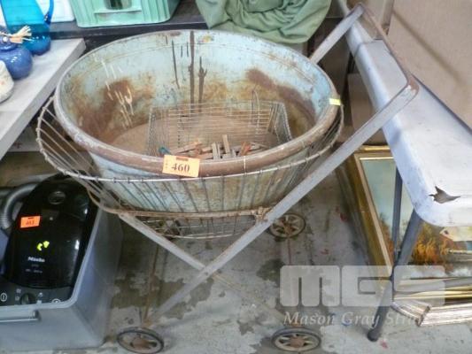 VINTAGE LAUNDRY BASKET, TROLLEY & PEG BASKET