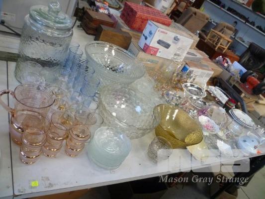 FINE CHINA & FINE CHINA PLATES, BOWLS, ETC INC ROYAL ALBERT, PALISSY, ROYAL SWAN, ETC, CRYSTAL & GLASSWARE, PUNCH BOWL SET, KOMBUCHA JUG/PITCHER, GLASSES, ETC, 1 x TABLE TOP