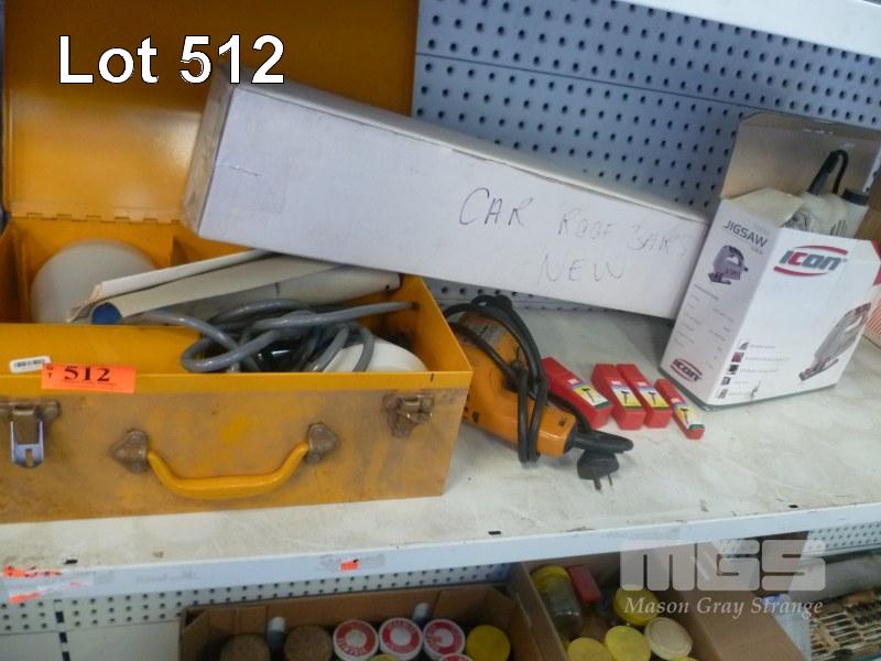 ELECTRIC SPRAY GUN SET, ICON JIGSAW, BLACK & DECKER DRILL & ROOF RACK