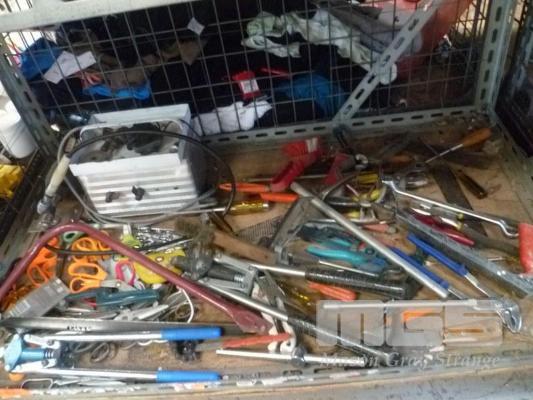 SCISSORS, SAW, SPANNERS, POP RIVET GUNS, MECHANICS TOOLS, ETC, 1 x BAY