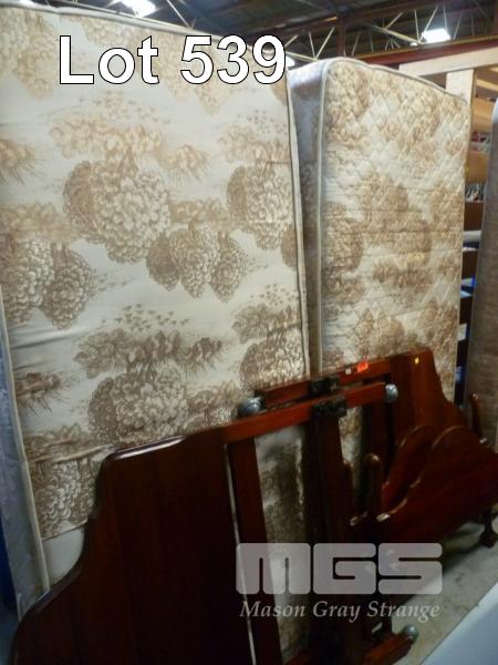 2 x SINGLE BEDS, MAHOGANY FRAME & 2 x MATTRESSES