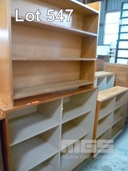 3 x SHELF UNITS, ASSORTED SIZES, PAINTED & STAINED PINE, 900 x 1200mm, 1070 x 1200mm & PIGEON HOLE SHELF UNIT, TIMBER LAMINATE, 1150 x 1120mm, 9 HOLE