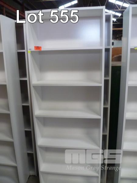 PAIR WHITE LAMINATE BOOKCASES, 6 TIER, 60 x 179cm