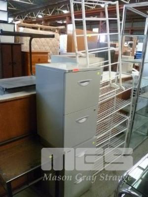 PAIR GREY METAL 2 DRAWER FILING CABINETS, SIDE TABLE, GLASS TOP & 3 x SHOE RACKS