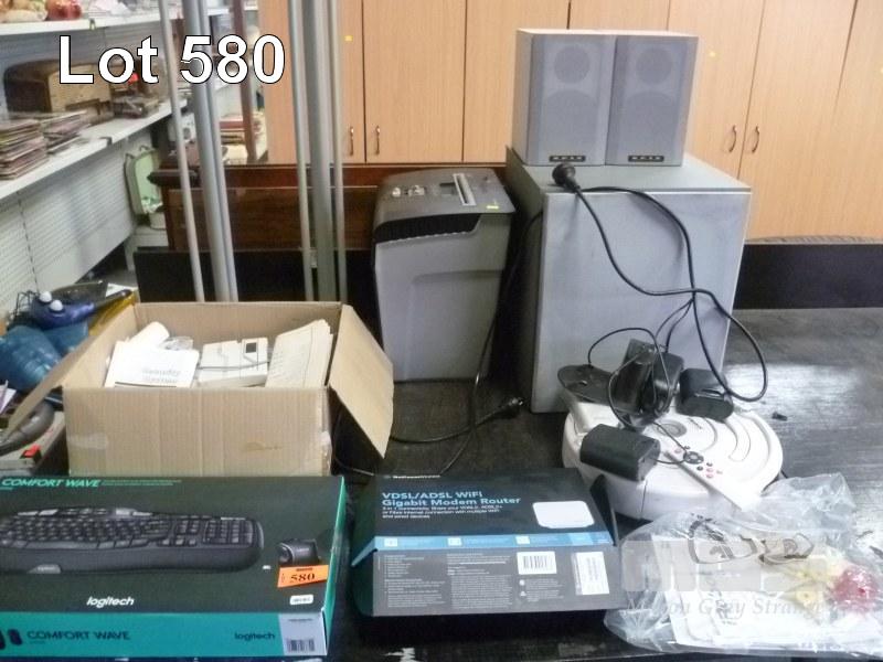 SET 3 KRIX STEREO SPEAKERS WITH 2 x STANDS, FELLOWES PAPER SHREDDER, iROBOT ROOMBA, ADEMCO SECURITY SYSTEM, LOGITECH CORDLESS KEYBOARD/MOUSE & NETCOM MODEM