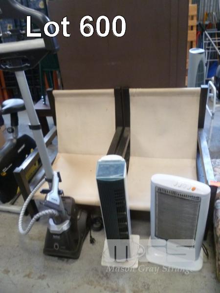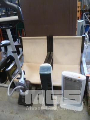 PAIR OF OUTDOOR SLING CHAIRS, CLOTHES STEAMER, HEATER & BLOWER