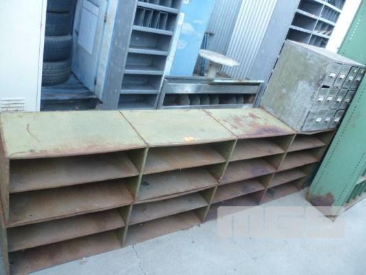 METAL LOWLINE SHELF UNIT, (L) 243cm, WITH PARTS DRAWER UNIT