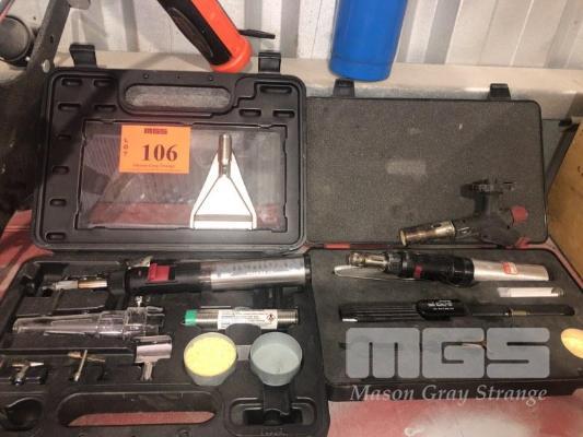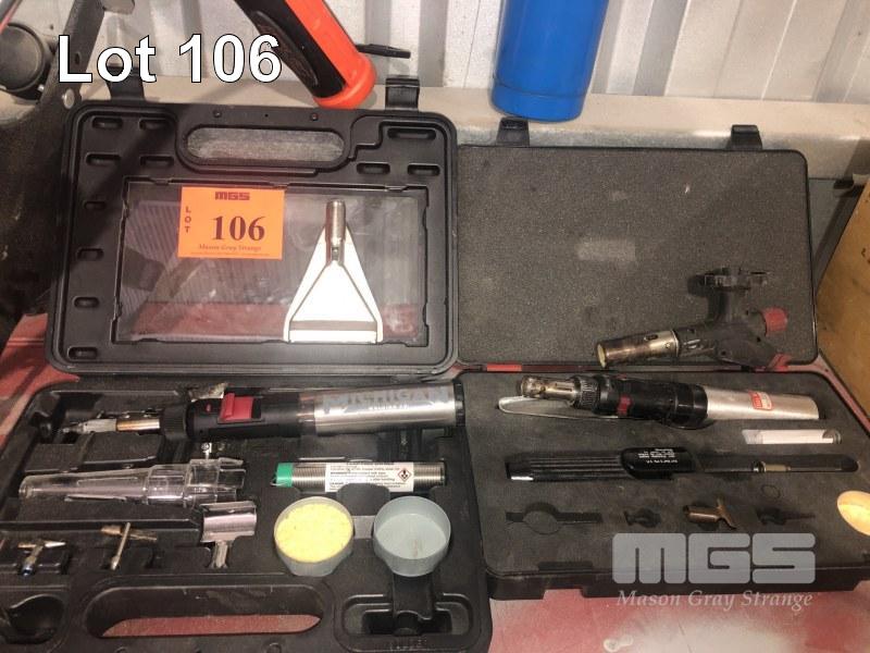 2 x MICHIGAN BUTANE SOLDERING IRONS, PROPANE TORCH & ARLEC MECHANIC LIGHT