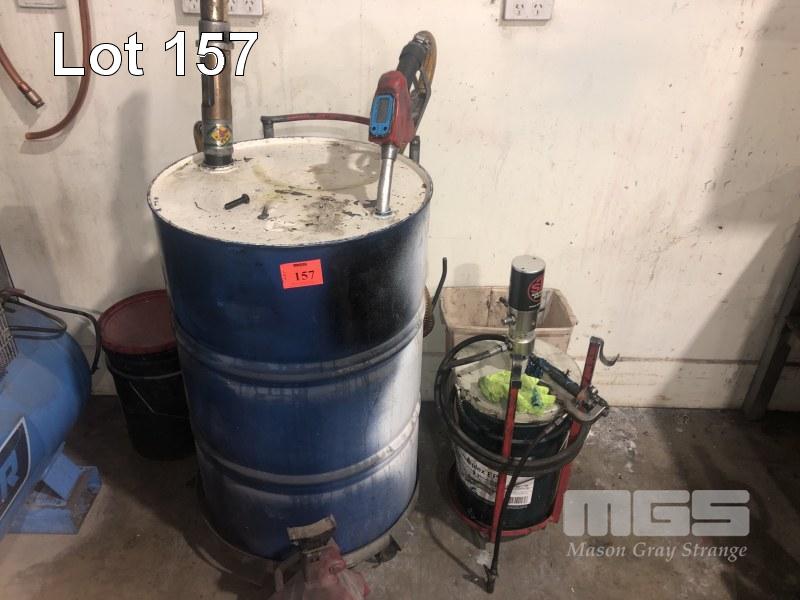 200 LITRE PNEUMATIC DRUM PUMP WITH HOSE & HAND PIECE DIGITAL METRO PLUS PNEUMATIC GREASE PUMP, 20 LITRE ON TROLLEY