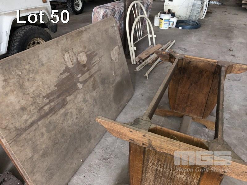 RUSTIC PICTURE FRAME, 2 x TABLES & COAT RACK, STEEL SINGLE BED & MATTRESS