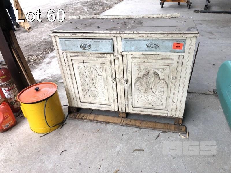 ANTIQUE SIDEBOARD CABINET, 2 x DOOR, 2 x DRAWER & FOWLER PRESERVE POT