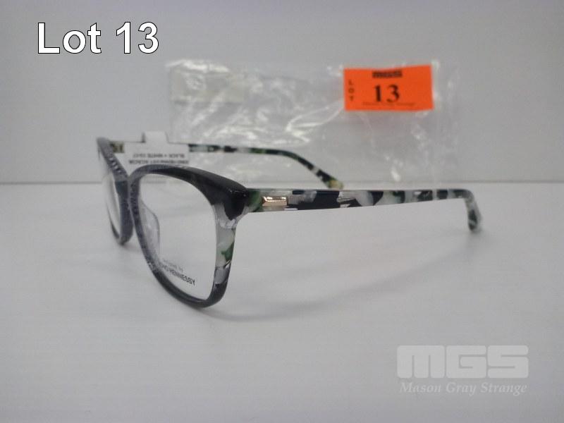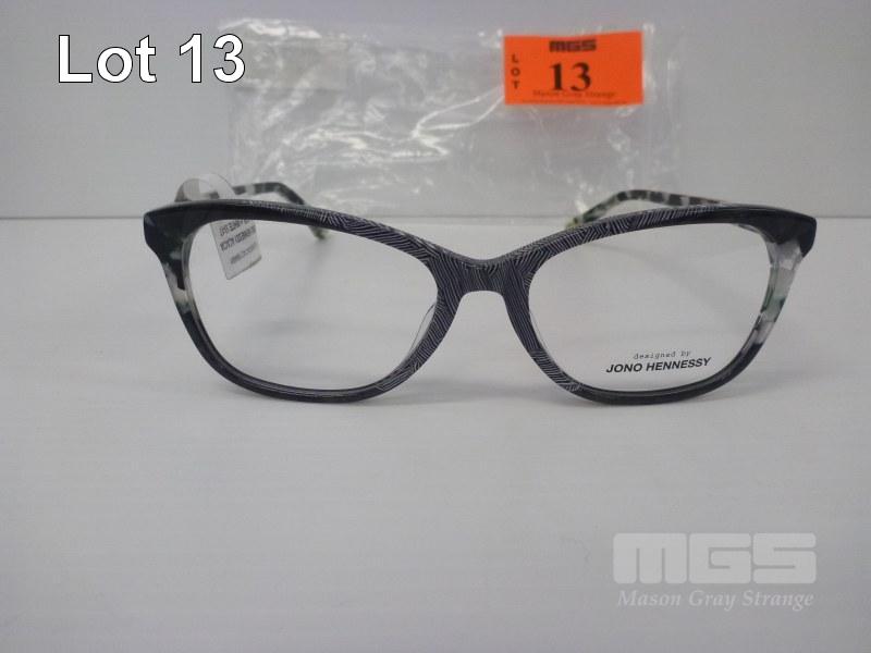 JONO HENNESSY GLASSES, BLACK/WHITE/GREEN (FRAMES ONLY) RRP $475.00 (SCRATCHES ON LENS)