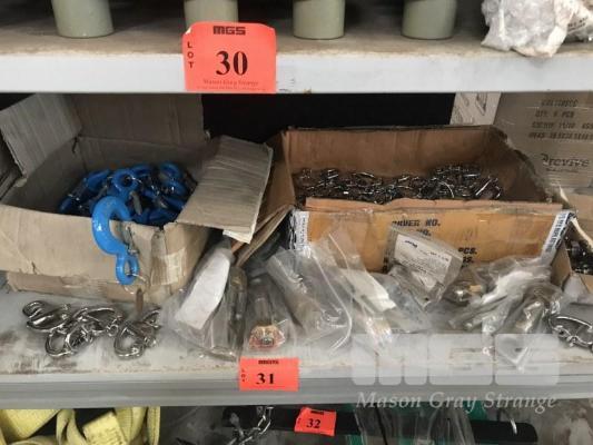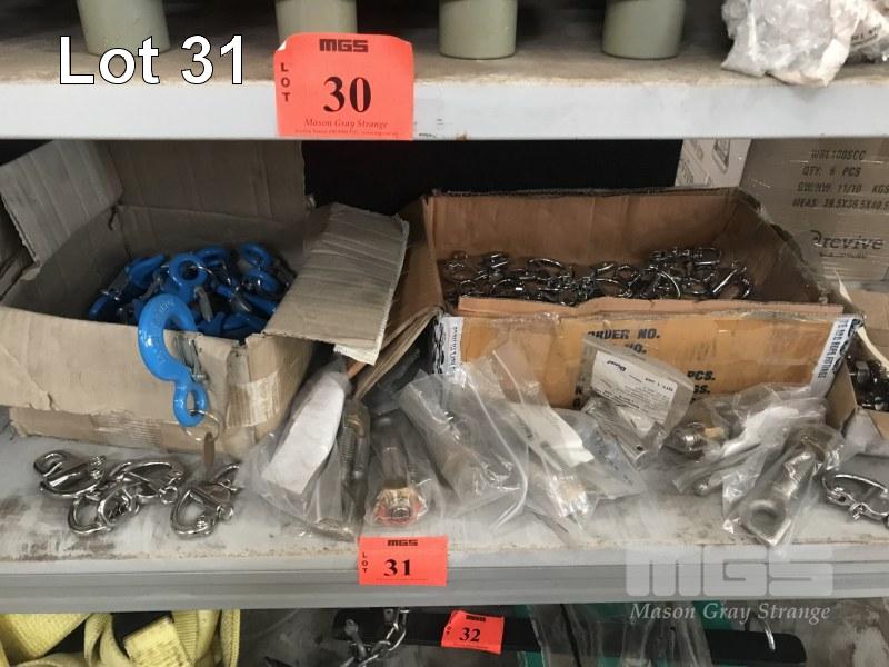 EYE BOLTS, SHACKLES, 1 TONNE SAFETY HOOKS, 1 x SHELF