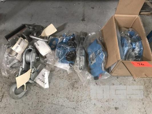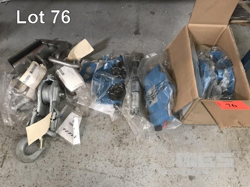 2 x GIRDER TROLLEYS, CRADLE DOG, SHEAVE BLOCK WITH SAFETY HOOK & S/S SHACKLES