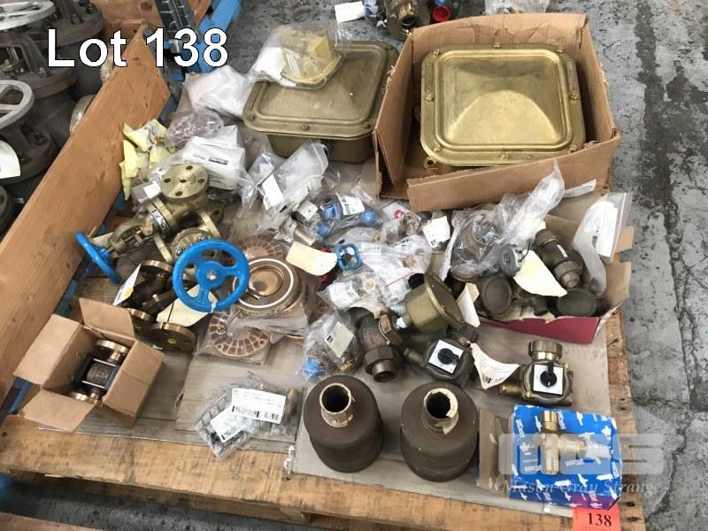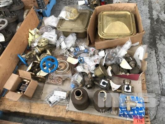 ASSORTED BRASS VALVES, JUNCTION BOXES, STRAINER TOPS, ETC, 1 x PALLET