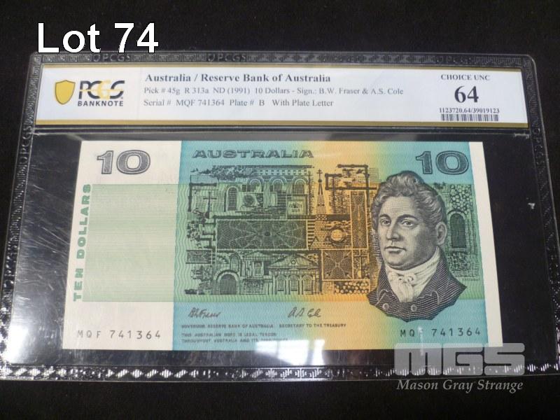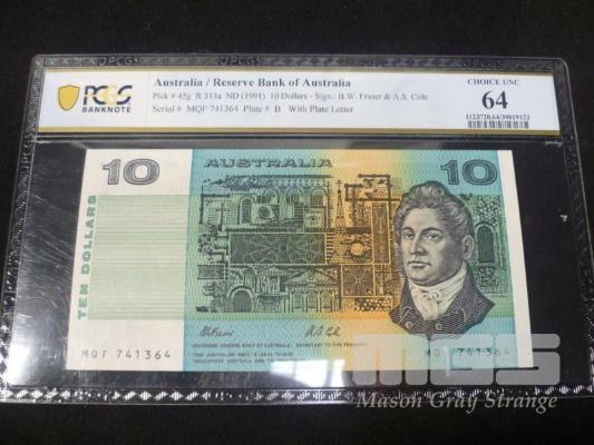 1991, AUSTRALIA, $10 PAPER BANK NOTE, FRASER/COLE, MQF 741364, (PCGS CHOICE UNC 64)