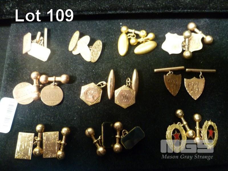 10 x PAIRS ASSORTED GOLD CUFF LINKS, MOST 9ct