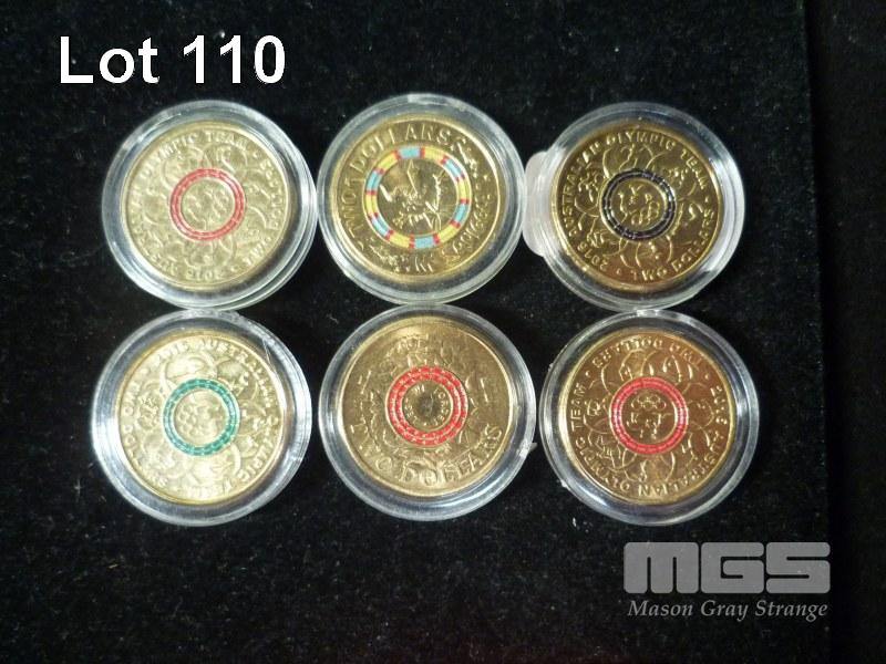 6 X AUSTRALIA COMMEMORATIVE $2 COINS, INC; OLYMPICS, MR SQIGGLE, LEST WE FORGET, ETC