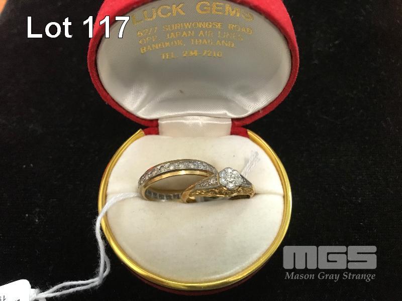 2 X GOLD RINGS MARKED 18CT, 1 X SET WITH DIAMOND SIZE 6, 1 X DIAMOND CHIPS SIZE 8 (US) 6.2 GRAMS TOTAL
