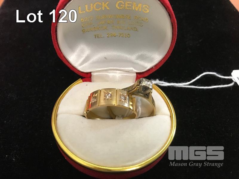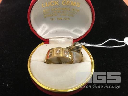 2 X GOLD RINGS MARKED 18CT, 1 X SET WITH DIAMONDS SIZE 9, 1 X DIAMOND CHIPS SIZE 9 (US) 8.15 GRAMS TOTAL