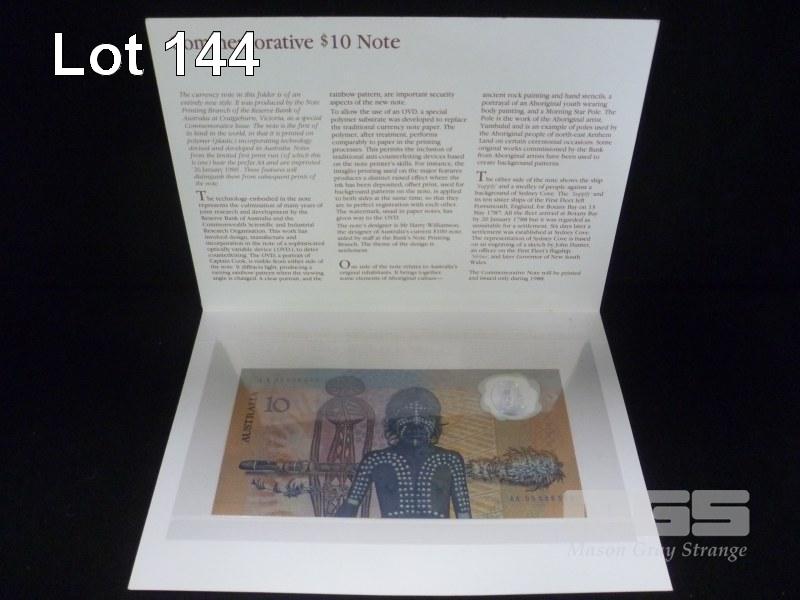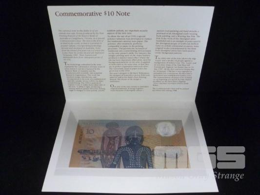 1988, AUSTRALIA, COMMEMORATIVE, $10 POLYMER BANK NOTE, OVERPRINTED NOTE FOLDER, AA 05088575