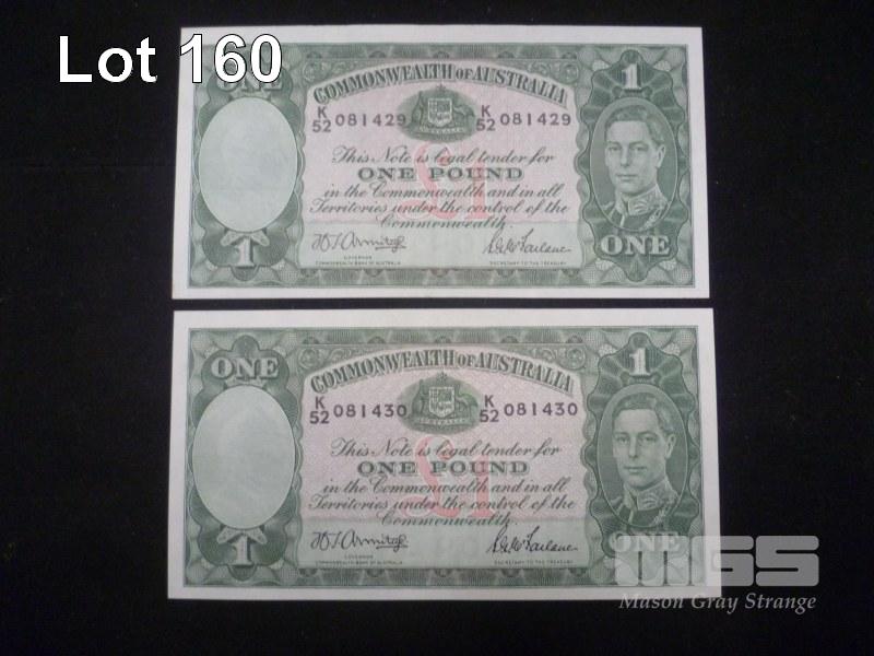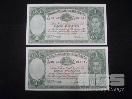 1942 2 x 1 POUND NOTE CONSECUTIVE ARMITAGE MCFARLANE