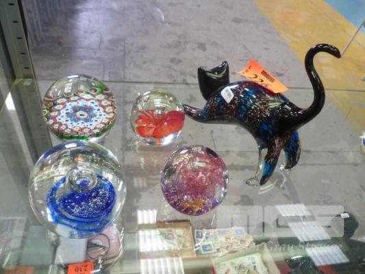 GLASS ART CAT & PAPER WEIGHTS