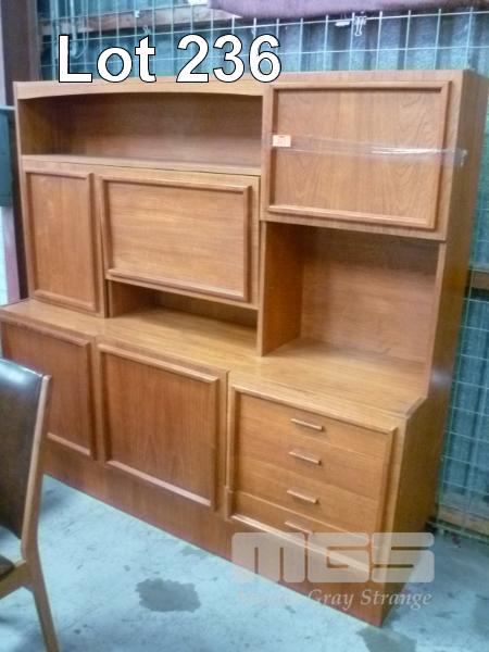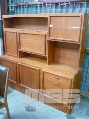 MACROB FURNITURE MID CENTURY TEAK WALL/COCKTAIL CABINET, 3 DOOR ABOVE STORAGE & 2 DOOR, 3 DRAWER UNDER STORAGE