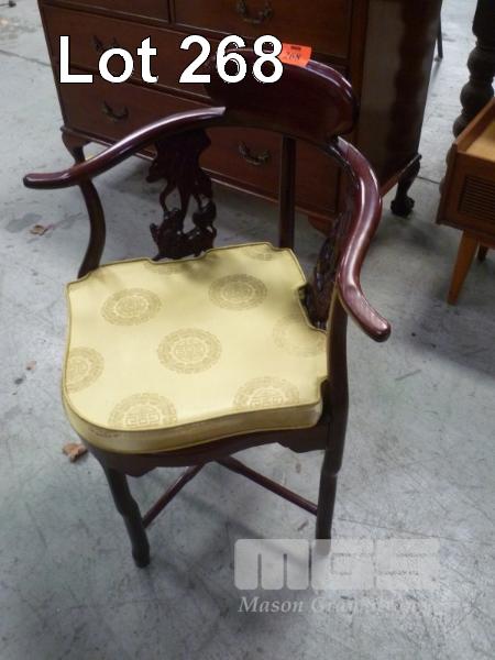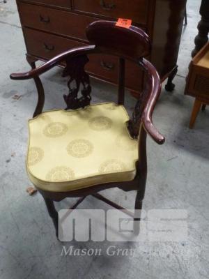 ANTIQUE CORNER BEDROOM CHAIR (REPAIR REQUIRED TO SEAT/BACK LEG AREA)