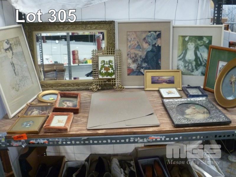 ASSORTED FRAMED PRINTS, MIRROR & WALL ART WITH MICHELANGELO FOLDER CONTAINING SKETCHED PRINTS