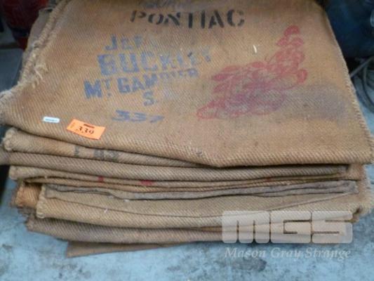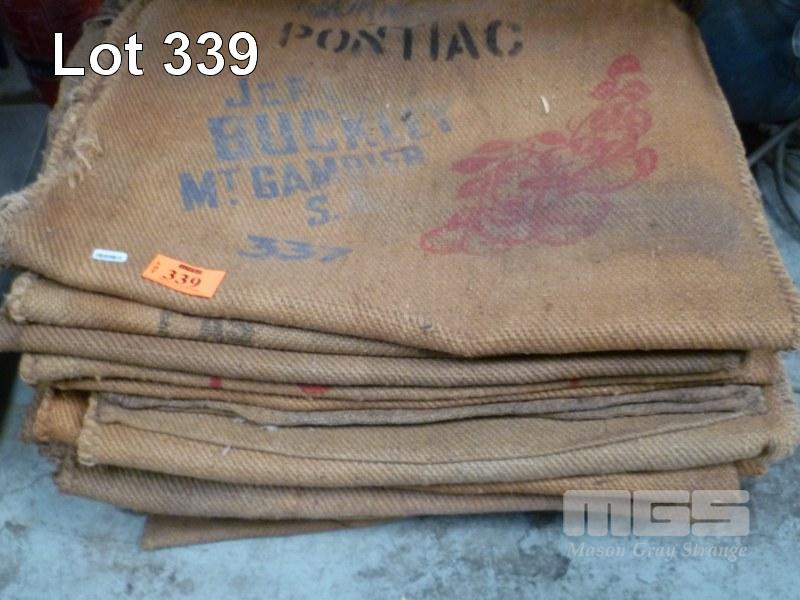 25 (APPROX) x HESSIAN BAGS, (SOME STENCILED)
