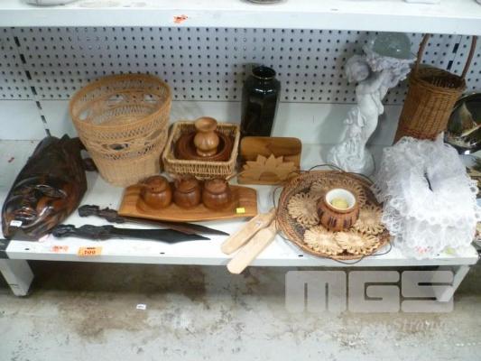 ASSORTED TREEN, WICKER BASKETS, ETC