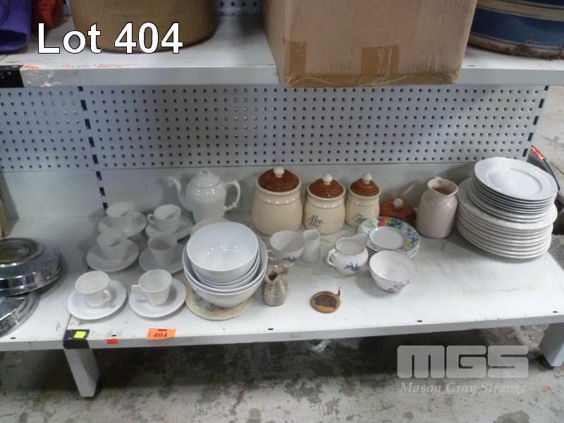 ASSORTED DINNERWARE, KITCHEN CANISTERS, ETC