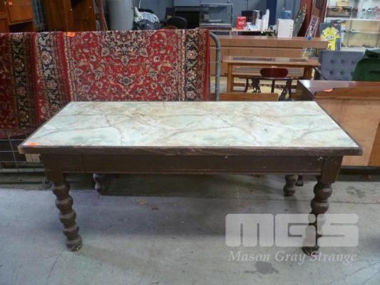 BROWN PAINTED RECTANGULAR DINING TABLE, MARBLE LAMINATE TOPPED