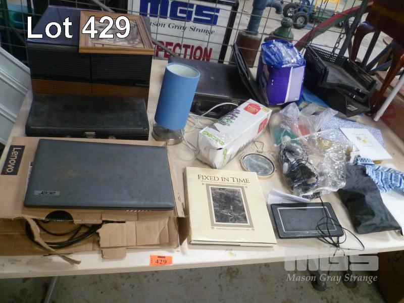 LAPTOP, LAMP, DIGITAL PHOTO FRAME, STATIONERY & BRIEFCASE, 1 x TABLE