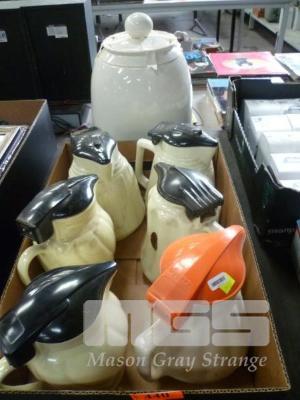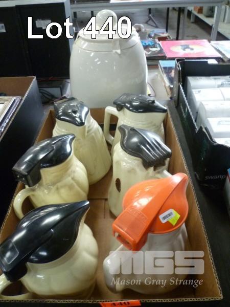 VINTAGE KETTLES INC HECLA, SPEEDIE, VULCAN, ETC, (NO POWER CORDS) & GLAZED CERAMIC WATER DISPENSER